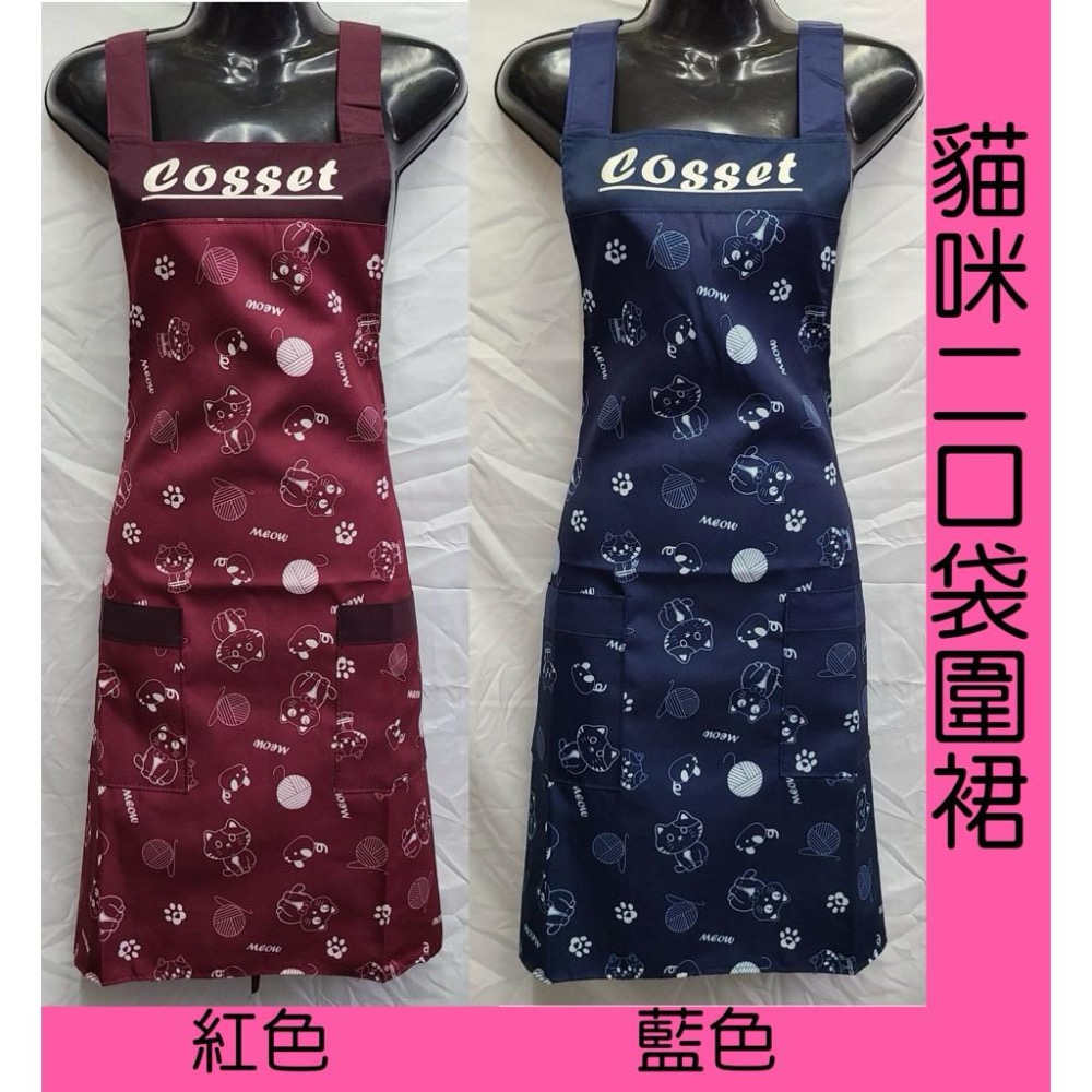 ♥️批發小姐[台灣製造] F5050貓咪二口袋圍裙 生意營業工作用圍裙