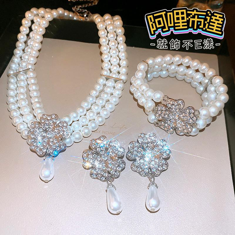 [項鍊尺寸] : 鍊長圓周約 44 cm(含延長鍊) 珍珠直徑約 0.7 cm 水鑽花朵直徑約 3 cm [耳環尺寸] : 珍珠直徑約 0.7 cm 水鑽花朵直徑約 3 cm [項鍊尺寸] : 平量直徑約 8 cm 珍珠直徑約 0.7 cm 水鑽花朵直徑約 3 cm[材質] : 合金 水鑽 仿珠