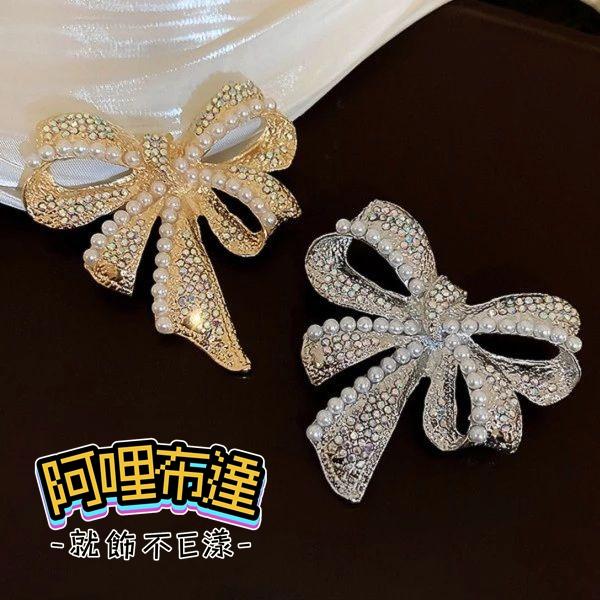 【阿哩布達】👉【胸針】台灣現貨 快速出貨BR11 水鑽珍珠立體蝴蝶結別針 胸針 徽章 兩色可選 GD 新娘飾品 新娘秘書