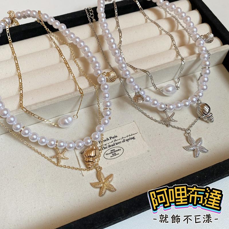 [尺寸] : 海星項鍊47cm +延長鍊8cm 海星直徑2cm 珍珠項鍊40cm +延長鍊8cm 珍珠直徑1cm 單顆珍珠項鍊38cm +延長鍊8cm 珍珠長1.5cm