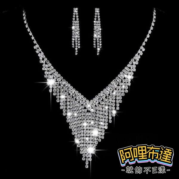 【阿哩布達】👉【套鍊組】台灣現貨 快速出貨TL51 美麗新娘 簡單氣質 水鑽V型流蘇項鍊耳環套組 二件組 新娘項鍊