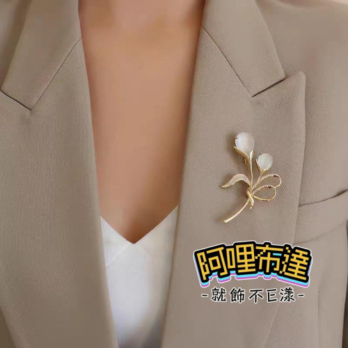 【阿哩布達】👉【胸針】台灣現貨 快速出貨BR16 高貴典雅 水晶鬱金香花朵鑲鑽別針 胸針 GD 兩色可選 新娘飾品 新秘