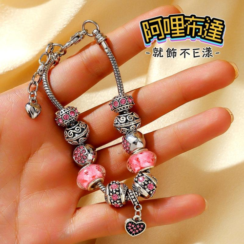【阿哩布達】👉【手鍊】台灣現貨 快速出貨SH108 精緻高雅 手作玻璃珠鏤空粉色水鑽球潘多拉串珠手鍊 新秘 新娘飾品