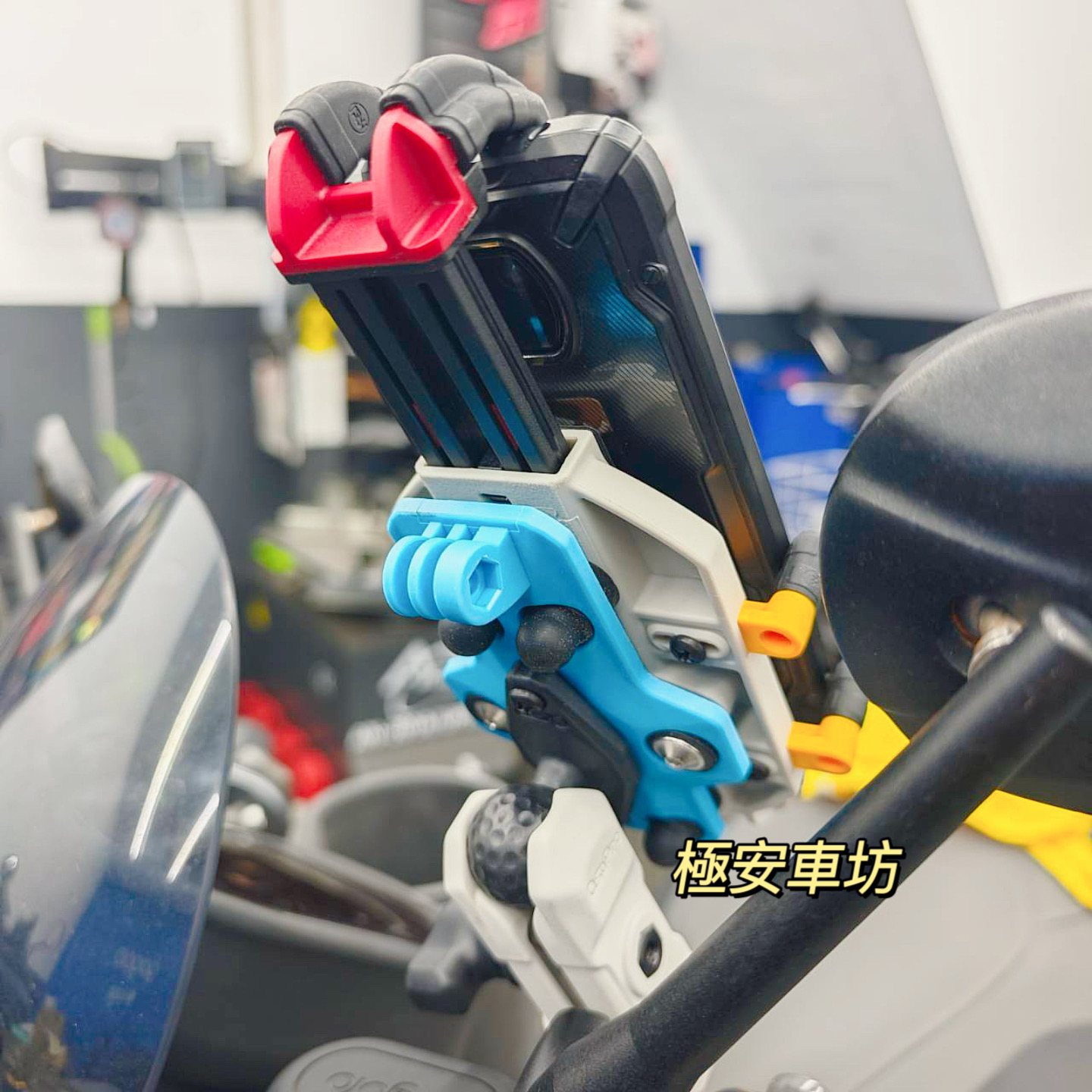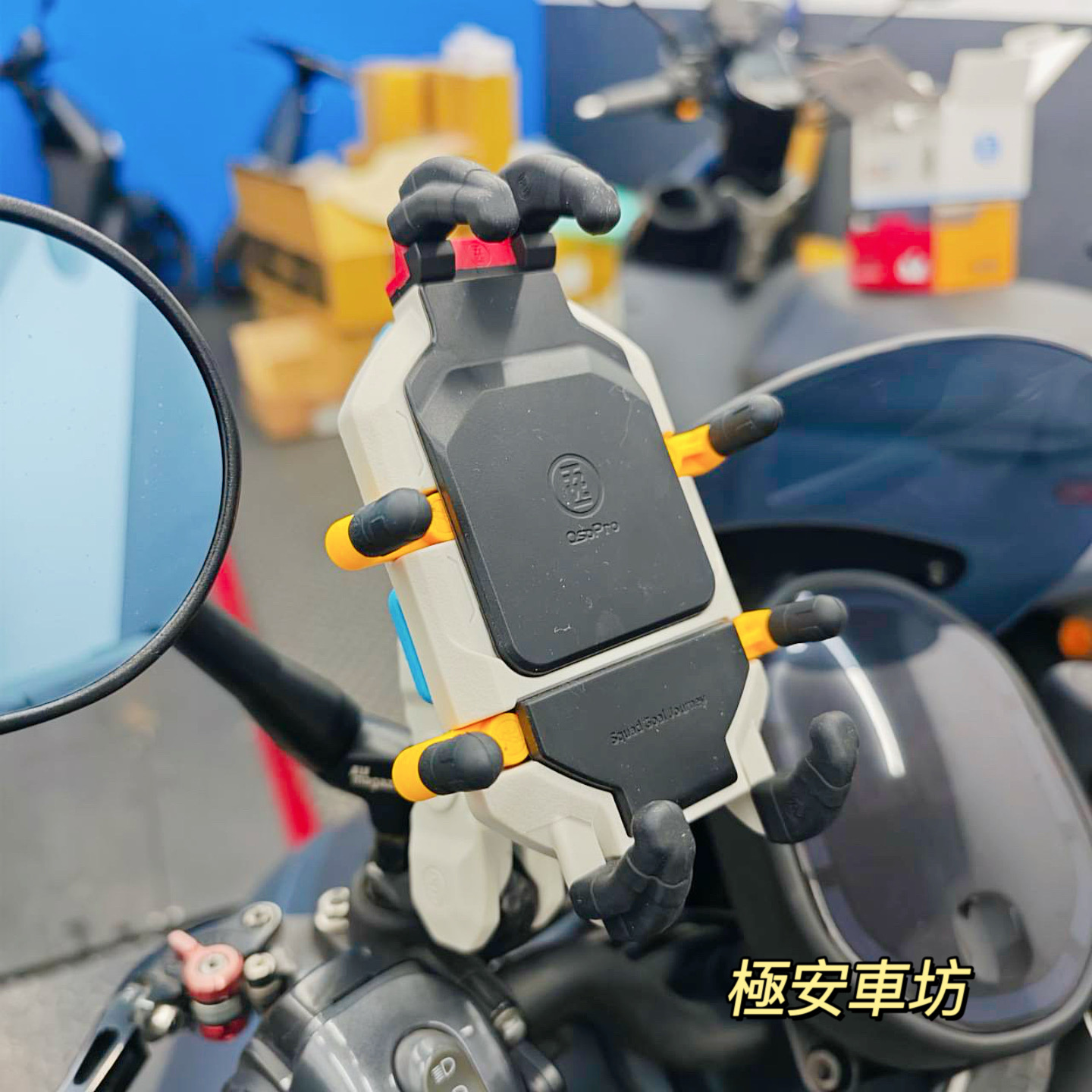 五匹 MWUPP OsoPRO 機車手機架|L型球頭後照鏡款|彩甲版甲殼減震款