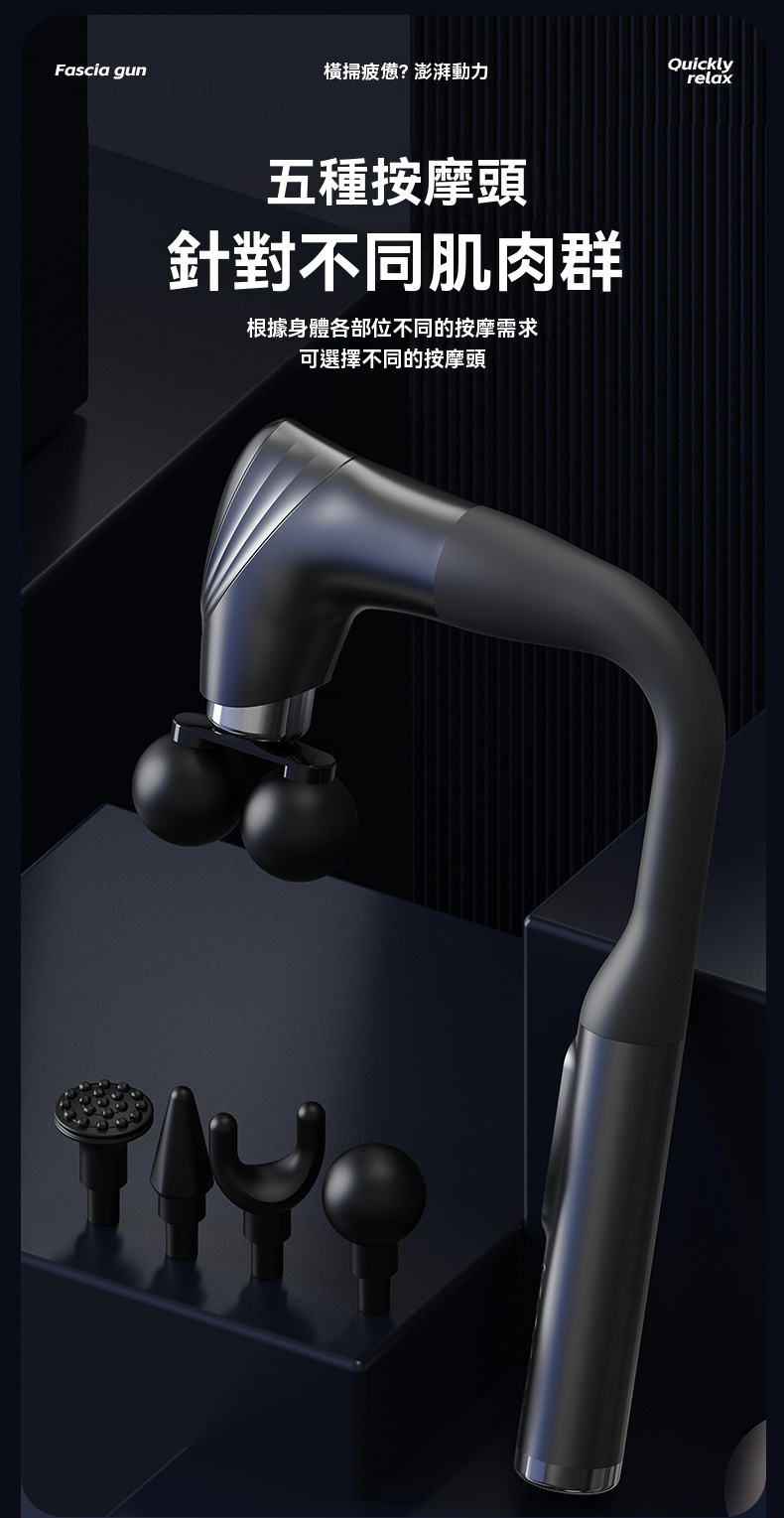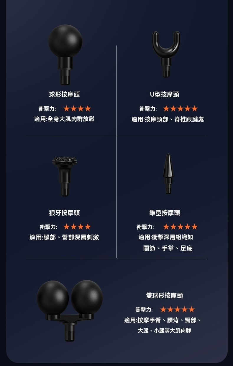 ✅提供5款不同按摩頭,可針對不同身體部位和按摩需求進行選擇。
