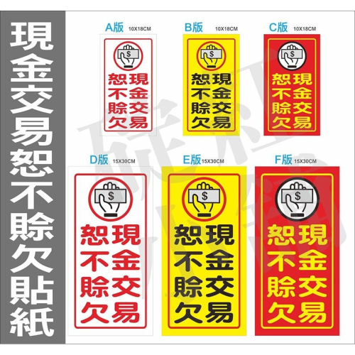 現金交易如不賒欠-防水告示貼紙