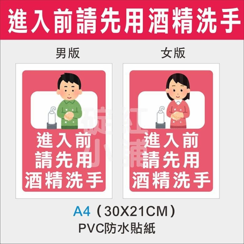 入內請先酒精洗手-防疫告示貼紙-PVC防水貼紙