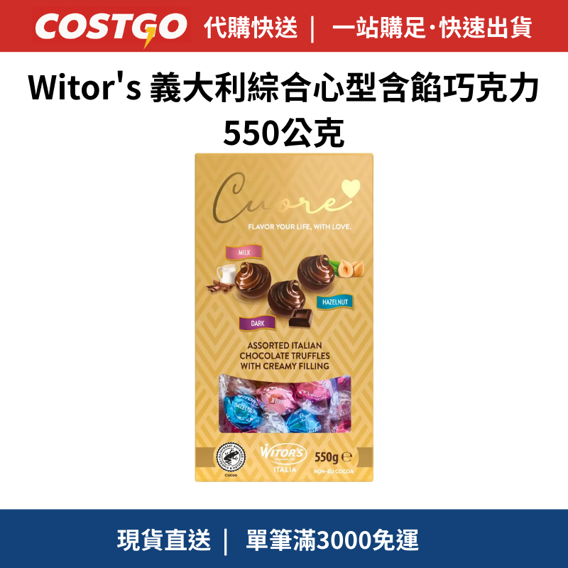 【快速出貨】 Witor's 義大利綜合心型含餡巧克力 550公克 大包裝 多口味禮盒 好市多代購 Costco代購