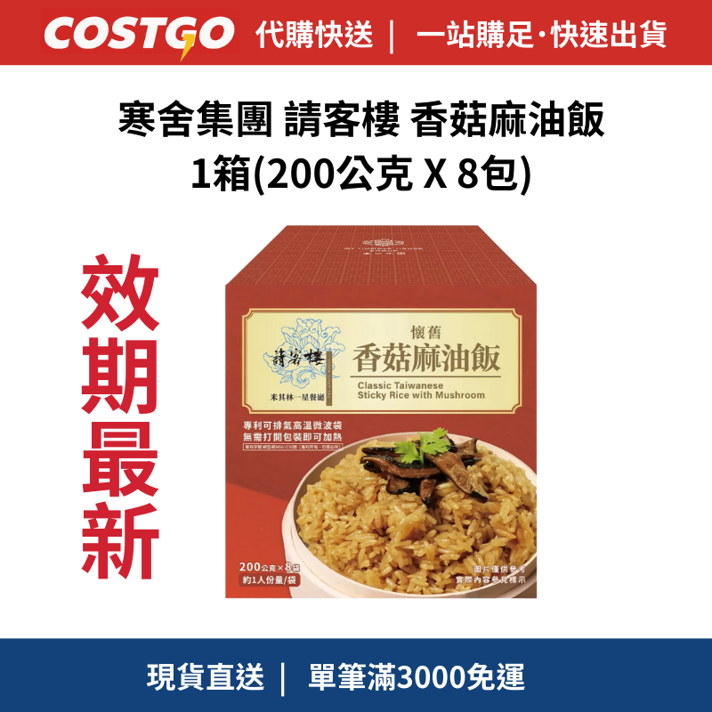 💥快速出貨💥效期最新💥 寒舍集團 請客樓 香菇麻油飯 200公克 X8包 即食料理 Costco代購 好市多代購