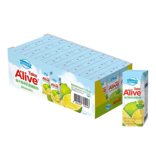 https://s-cf-tw.shopeesz.com/file/tw-11134208-81ztk-mi1qa2762z2952 【請注意】: 1. 商品我們都是接單後直接到賣場購買,以確保效期為好市多最新批次。 2. 如遇賣場缺貨,會透過聊聊通知您,敬請留意您的訊息。 3. 商品若有紙盒會直接紙盒原箱寄出 4. 多件商品、無原箱、拆賣者,會用其他箱子包裝 5. 要送禮請下標備註,會額外加一個箱子包裝 •韓國東遠集團出廠。 •具有柚子微酸的清爽感。 •冷藏飲用風味更佳。 •不含咖啡因 •在夏季能與氣泡水水以7:3的比例混合冷凍成冰棒。 •適合出遊、聚會時飲用 商品規格: 品名 : 韓國東遠 Denmark Take Alive 柚子風味乳酸菌飲料 200毫升 X 24入 內容量/入數 : 200毫升 X 24入 商品重量 : 4.8公斤 成分 : 水、果糖、混合乳酸菌[混合奶粉(脫脂奶粉、乳清粉) 、葡萄糖、乳酸菌、混合製品(矽樹脂、脂肪酸山梨醇酐酯、脂肪酸甘油酯、羧甲基纖維素鈉、水) 、水]、聚糊精、柚子濃縮液、營養添加劑(維生素C) 、羧甲基纖維素鈉、檸檬酸、柚子香料、檸檬酸鈉、膳食纖維(柑橘來源)、混合製品(酒精、水、甜橙皮油)、混合色素[糊精、黃梔子色素、多磷酸鈉、營養添加劑(維生素C) 、抗氧化劑( L-抗壞血酸鈉)]、混合製品(水、矽樹脂、脂肪酸山梨醇酐酯、脂肪酸甘油酯、羧甲基纖維素鈉)、蔗糖、甜味劑(甜菊醣苷)、混合色素(糊精、梔子藍色素、檸檬酸鈉、多磷酸鈉) 、鹽 商品尺寸 : 長 33公分 X 寬 16.5公分 X 高 12.5公分 保存期限 : 以消費者收受日起算,至少距有效日期前60日以上 產地 : 韓國 保存方式 : 常溫,請放置於陰涼乾燥處,避免陽光直射,開封後請儘速食用完畢。 製造/進口商名稱 : 逢海國際有限公司 製造/進口商地址 : 台北市內湖區康寧路3段56巷1號10F之3 製造/進口商電話 : 02-2646-5678 注意事項 : 1. 本產品含有牛奶及其製品,食物過敏者請留意。 2. 本產品與使用雞蛋、花生、大豆、含麩質之穀物、牛肉及其製品的產品在同一生產設備中生產,食物過敏者請留意。 3. 每日建議飲用量一瓶。 產品責任險契約字號 : 151613PD61619-NSB002 食品業登錄字號 : A-128171969-00005-1 原汁含有率 : 低於10%