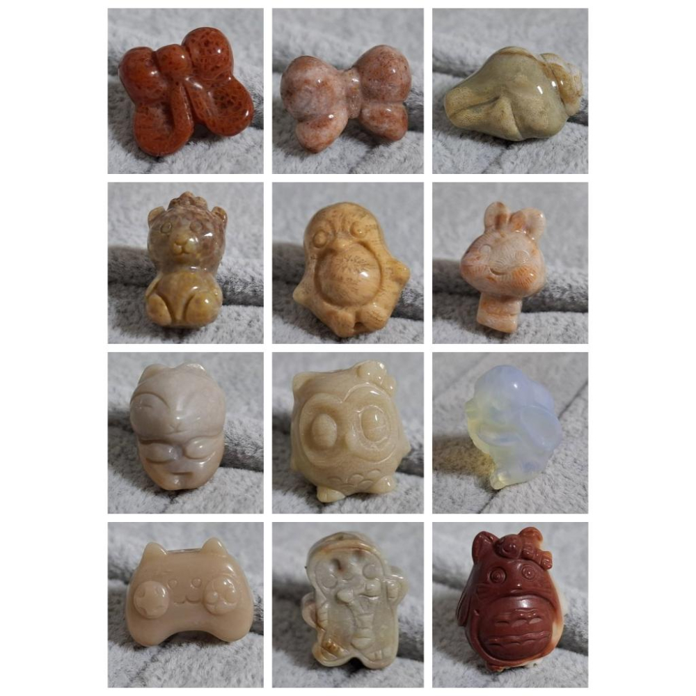 👉通孔小件默認小瑕(平頭/孔位小凹坑點/表面坑點),可包容小瑕疵再下單,謝謝 材質:珊瑚玉/阿拉善 尺寸:(大約mm參考) 按照順序(圖2) 1-1珊瑚玉蝴蝶結13*13*8 1-2珊瑚玉蝴蝶結11*15*7 1-3珊瑚玉貝殼21*13*12 2-1珊瑚玉熊(背面扁平)20*12*10 2-2珊瑚玉企鵝(背面扁平)18*16*9 2-3珊瑚玉兔頭鑰匙18*13*10 2-4珊瑚玉狐狸16*13*12 2-5珊瑚玉貓頭鷹16*14*13 3-1蛋白石蘿蔔兔19*13*15 3-3阿拉善遊戲手把16*11*8(背面有瑕) 3-4阿拉善薑餅人16*12*7 3-5阿拉善龍貓16*12*11 🌟│購物須知│🌟 ●請勿糾結在意平頭/礦缺雜點/ 色差/手圍/棉裂冰裂/尺寸/同串珠子不同大小(些微誤差無法避免) ●天然礦物有礦缺.黑點.雲霧.冰裂紋為正常現象 ● 商品皆實拍,近拍有放大效果,請勿自行想像大小尺寸 ●不同電腦.手機皆有色差,拍照會因角度/光線/鑽切面呈現不同色澤 ●金屬製品表面會因摩擦產生細小刮痕屬正常現象 ●純手工飾品難免有手作痕跡,無法100%完美 ✨ 小本生意,完美主義者請勿下單,謝謝🙏