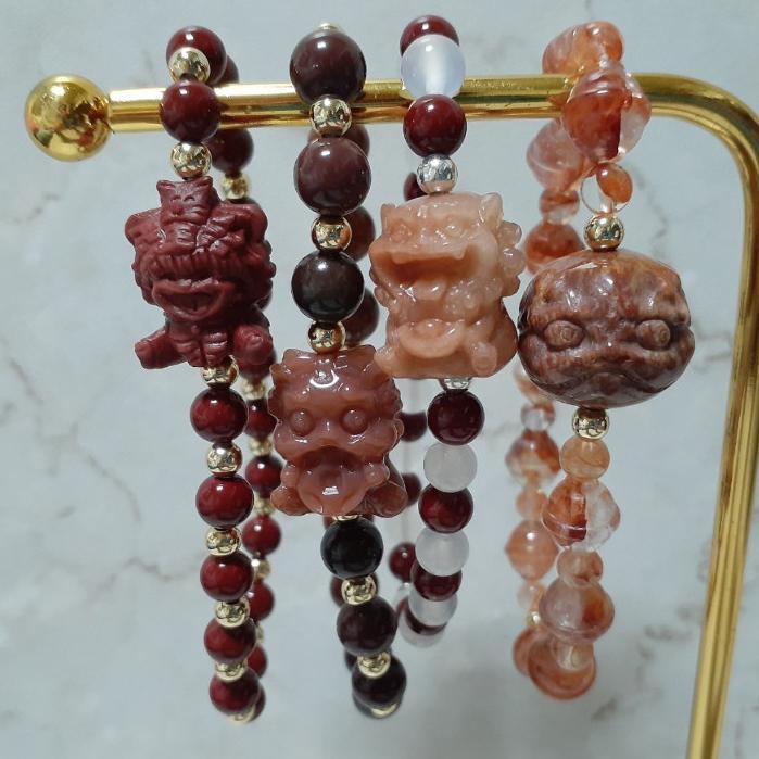 材質/尺寸: 1:阿拉善開心獸17.5*17.2咪/硃砂5.8咪/14K包金珠3.5咪/16.5~17手圍 2:阿拉善吞金獸18.5*14.8咪/阿拉善珠7咪/14K包金珠3.5咪/16.5手圍(雕件有瑕)(圖8) 此款在串的時候沒注意雕件有瑕,肚子底部有個不刮手的小缺角+底部有一條礦缺(圖8) 漏價出清~不介意再購買 可聊聊細看瑕疵部分 3:阿拉善元寶獸16.5*14.9咪/硃砂5.8咪/白玉髓5.5咪/16.5手圍 4:珊瑚玉醒獅頭16.2*14.3咪/膠花鈴鐺8.5咪/膠花珠4.8咪/16.5手圍 可聊聊細看 ------------------------------------------------------------------------------------------------------------------------------------------------------ 🌟│購物須知│🌟 ●珊瑚玉因人體質而異,養出來的變化也有所不同 ●天然珊瑚玉有砂孔.皮花.燒刀紋.生長紋.礦缺.黑點.冰裂紋為正常現象 ● 商品皆實拍,近拍有放大效果,請勿自行想像大小尺寸 ●不同電腦.手機皆有色差,拍照會因角度/光線/鑽切面呈現不同色澤 ✨ 小本生意,完美主義者請勿下單,謝謝🙏 #阿拉善 #阿拉善手珠 #珊瑚玉手串 #珊瑚玉手環 #珊瑚玉手鍊 #天然珊瑚玉 #能量水晶