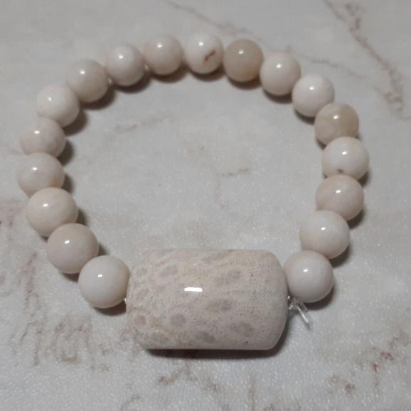 【三寶坊】天然珊瑚玉手串 設計款 奶白色系 珊瑚玉手串/手珠/手鍊/手排/手環 H6