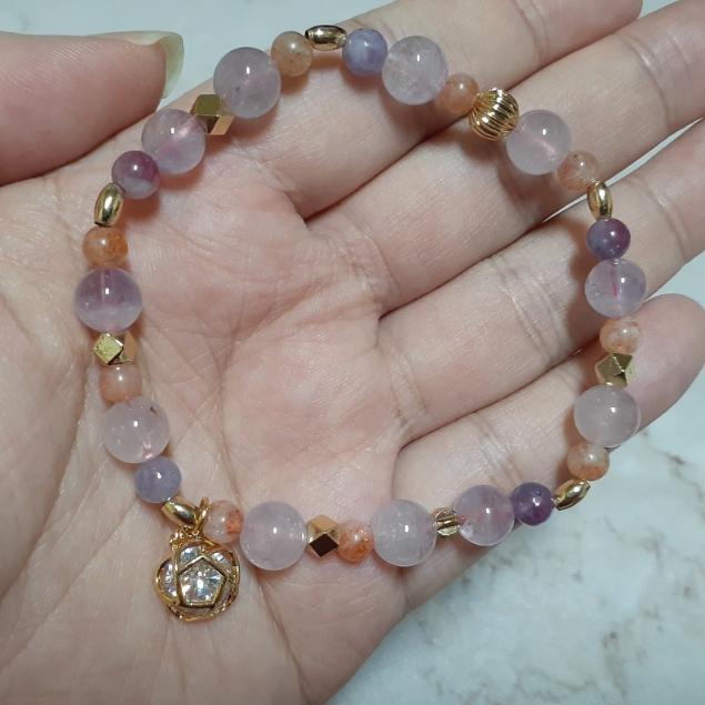 【三寶坊】粉晶 太陽石 紫水晶手鍊 設計款 春天花開 手串/手珠/手鍊/手排/手環