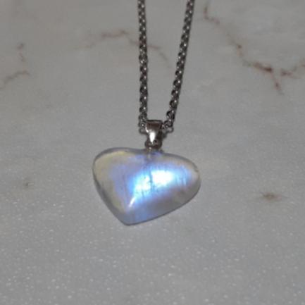 【三寶坊】藍月光石項鍊 藍月光愛心吊墜 月光石墜子 藍月光純銀項鍊 愛心月光石