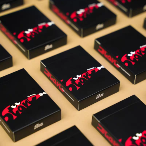 延續“元素系列”加強開扇視覺的設計,牌邊加入星形點綴,提升開扇、緞帶展牌等花切動作的視覺效果,使紙牌與動作進行更進一步的交融。選用簡約黑紅配色,Logo如被手電筒光束照亮,寓意“照亮花切愛好者的前行之路”,這也是設計者對紙牌的寄意,希望所有用這款牌練習的玩家,都能在不斷的練習中,獲得自己的成就感,更能感受到屬於自己的那一份快樂。