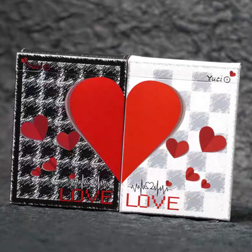 點睛之處是牌背上兩顆相對的愛心,不僅闡述了心動信號的主題,又為黑白灰的色調增添了一抹跳動的鮮紅。