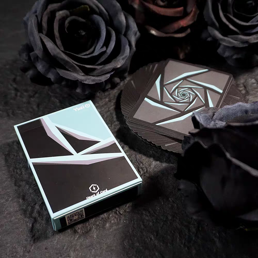 牌背的圖案一眼看像是一朵玫瑰花,花瓣向著四周綻放,最中心則是花蕊。但仔細再看時,又仿佛像一條深邃的隧道,螺旋著旋轉進神秘的空間當中,仿佛要把人給吸進去。這種旋轉著的圖案,對於切牌也有很好的展現效果,特別是做旋轉類動作的時候。更是能增強旋轉感。