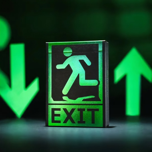 出口標識最大的特點,莫過於簡潔直觀的視覺符號和醒目亮眼的高飽和熒光;而我們在紙牌延續了這個特點。