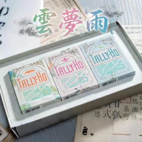 你或許早已熟知 Tally-Ho —— 它是魔術師手中的經典,是花切愛好者指尖的鋒芒。而這一次,它將目光轉向東方文明,將千年文化凝於指掌。以千年飛花令為魂,融「雲、夢、雨」三境為形,融合國風水墨畫的風格,Tally-Ho 推出三副限定設計款紙牌,將古典詩意裁入方寸紙牌,待君親啟這卷流動的水墨詩篇。