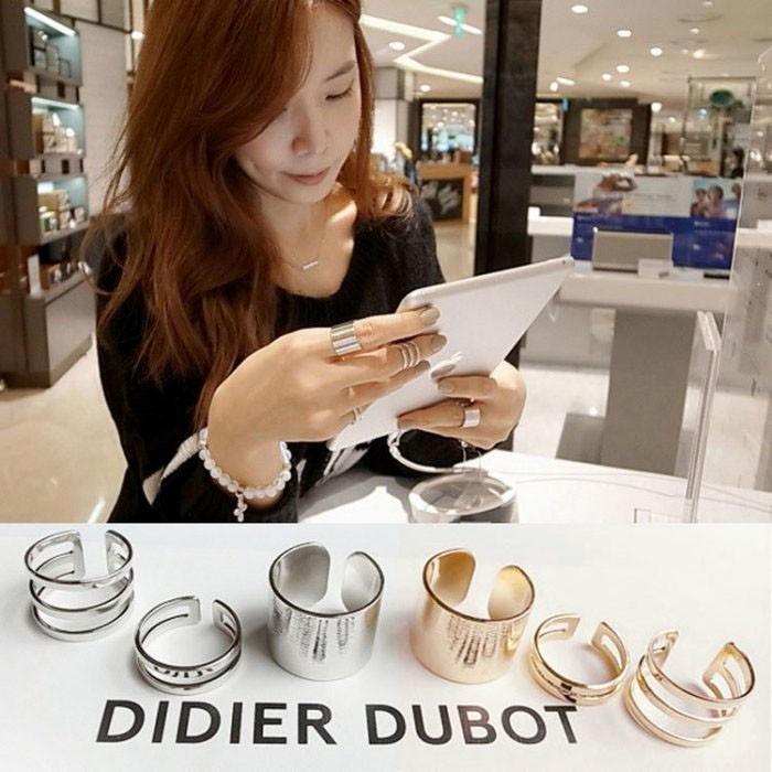 日韓生活館 韓國主君的太陽 三件套戒指組 開口戒指寬版戒指 鏤空金屬指環 簡約配件 流行飾品 女生戒指 尾戒 可調節戒指