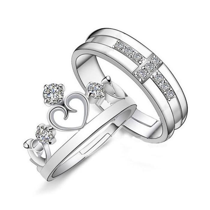 日韓生活館 皇冠十字架戒指 情侶戒指 王子與公主情人對戒 求婚戒 活圍戒 開口可調整戒指 銀飾指環 銀戒指 男女流行飾品