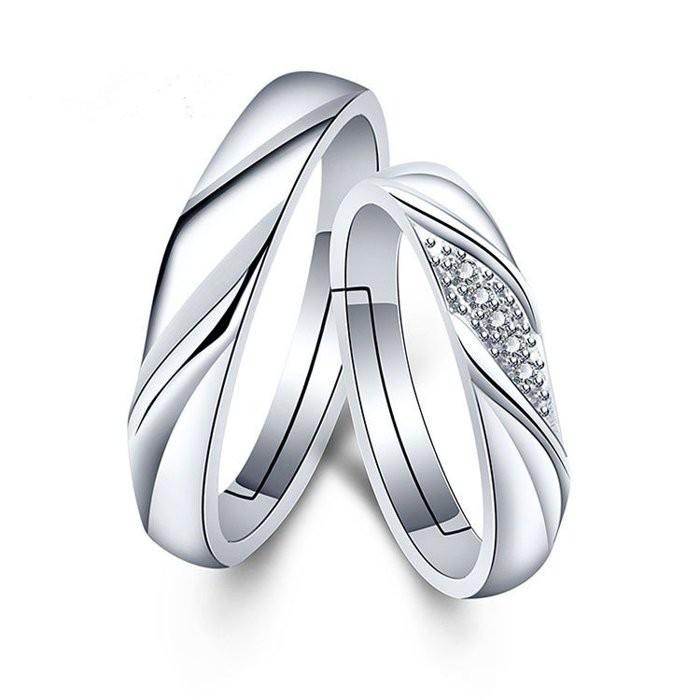 情侶對戒 鋯石水鑽戒指 簡約活圍戒 情侶戒指 時尚首飾求婚戒 情侶飾品 定情戒 開口可調節戒指 情人戒指銀飾 日韓生活館