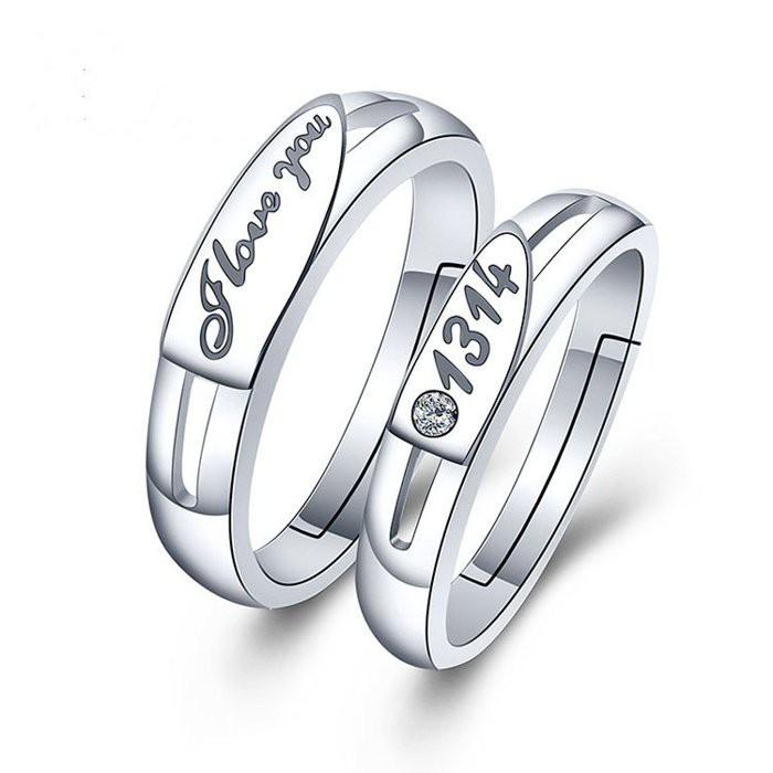 1314一生一世鋯石鑲鑽情侶戒指 潮流指環飾品 日韓時尚戒指刻字銀飾 情人對戒 男女個性戒指 情人節禮物 活口可調節戒指