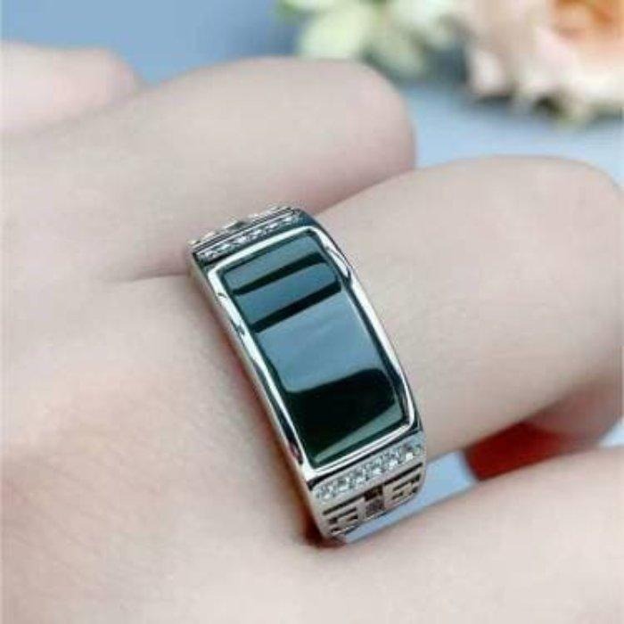 霸氣男士戒指 仿玉石戒指 男款指環 黑戒指 寬版戒指 男生戒指 大戒指 開口可調戒指 仿玉髓戒指 復古寶石戒指 綠戒指