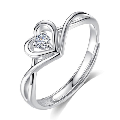 愛心戒指 鋯石戒指 單鑽戒指時尚指環 韓國飾品 開口戒指 可調戒指 女生戒指 怦然心動情人節禮物 心型鑲鑽戒指 仿真鑽戒