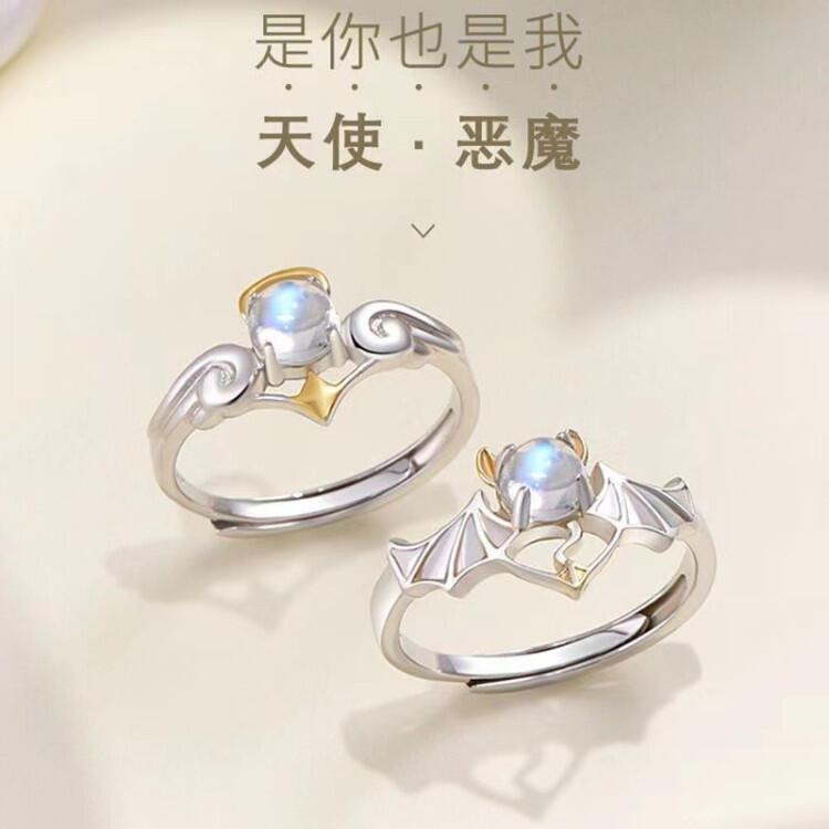 天使惡魔翅膀戒指 情侶戒指 月光石戒指 歐美時尚飾品 可調節戒指 開口戒指 情侶對戒男女指環 復古戒指 食指戒 雙色戒指