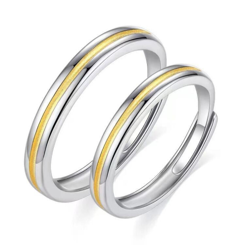 情侶戒指 雙色戒指 男女對戒 可調節戒指 銀戒指 開口戒指 食指戒 情人戒指 金色拼接戒指 銀飾 指環 銅戒指 日韓飾品