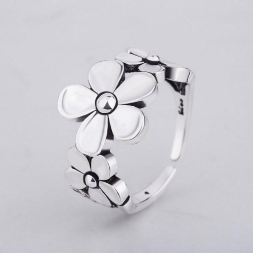 日韓生活館 花朵戒指 復古風戒指 泰銀指環 開口戒 可調節戒指 鍍銀戒指 潮流女戒指 銅飾 金屬戒指 女生飾品 個性戒指