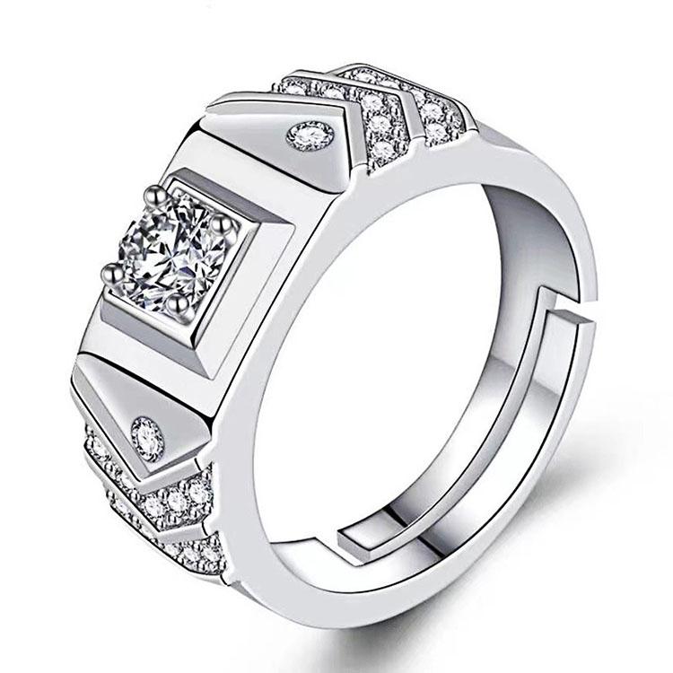 男生戒指 V形開口戒指 霸氣男戒 鋯石戒指 男士寬版戒指 戒圍可調節戒指 男性飾品 銀戒指 仿真鑽石戒指 活圍戒指 銅飾