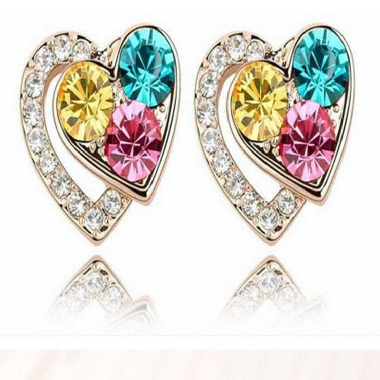 愛心耳環 彩色水晶耳環 彩鑽耳環 超閃氣質心型耳釘 韓國飾品 韓系耳飾 多色寶石耳環 愛心水鑽耳環 心心相印 日韓生活館