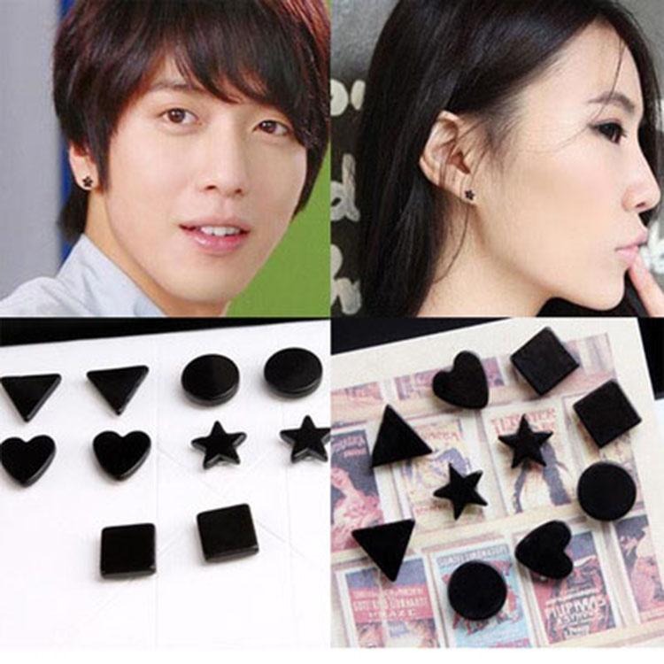 黑色耳環 磁鐵耳環 無耳洞耳環 吸鐵石耳環 假耳夾耳環 男女通用免穿洞耳環 韓國耳飾品 明星款耳環 十字星星愛心圓形耳環