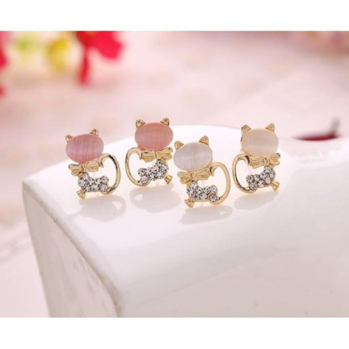 閃耀水鑽貓咪耳環 韓國飾品 貓眼石耳環 氣質耳釘 日韓熱賣耳環 韓版耳環 貓耳環 可愛耳飾 超萌甜美耳環 動物造型耳環