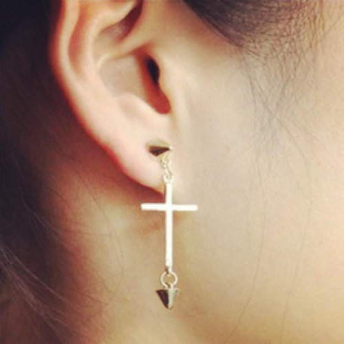 日韓生活館 韓國流行耳飾 十字架耳環 潮女個性耳釘 耳墜 鉚釘吊墜耳環 歐美風潮流飾品 耶穌基督 韓系少女首飾 金屬耳環
