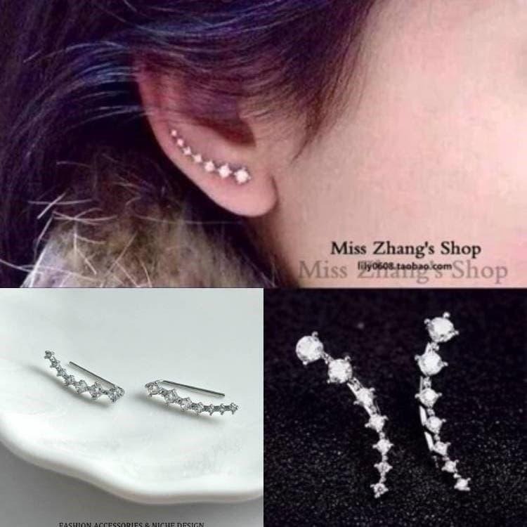 北斗七星耳環 閃鑽鋯石耳環 氣質耳釘 排鑽耳環耳勾 韓國飾品 一排式水鑽耳環 超閃星星耳環 弧形一字耳環 簡約高級感耳飾