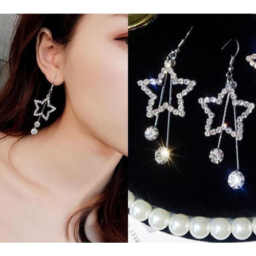 五角星星耳環 韓國氣質耳飾 星星吊墜耳環 造型耳環 鑲鑽鋯石耳環 潮人個性飾品女 星形水鑽耳墜 長款垂墜後掛式耳環 耳勾