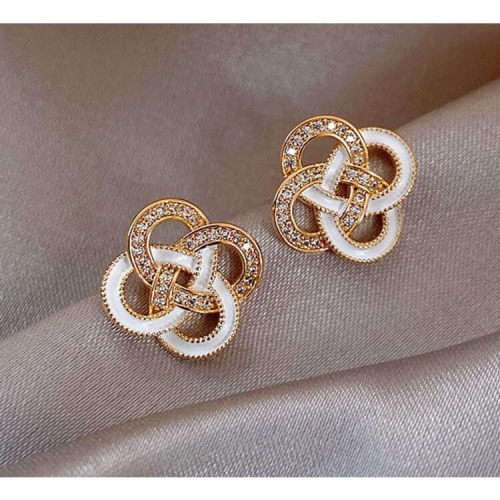 幸運四葉草耳環 韓國簡約氣質耳飾 宮廷風耳環 輕奢高級感鑲鑽耳釘 花朵耳環 小香風耳環 時尚百搭飾品 古風耳環 圓圈耳環