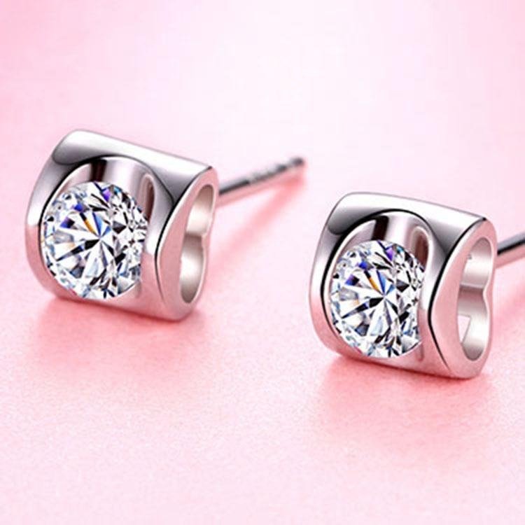 天使之吻超閃鋯石耳釘 愛心耳環 鑲鑽耳環 日韓飾品 仿莫桑鑽耳環 心型耳釘 單鑽耳環 簡約耳飾 小耳環 銀耳環 貼耳耳環
