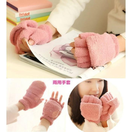 韓風時尚加厚毛絨半指手套 手機平板電腦多功能防寒手套 韓國創意冬季保暖手套 萬用針織露指手套 開車騎車手套 翻指兩用手套