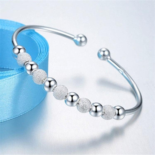 轉運珠手環 磨砂手鐲 簡約百搭手鍊 開口手鐲 圓珠銀手環 銀飾 珠子 鐲子 珠珠手環 串珠銀手鐲 經點時尚手環 銅手鐲