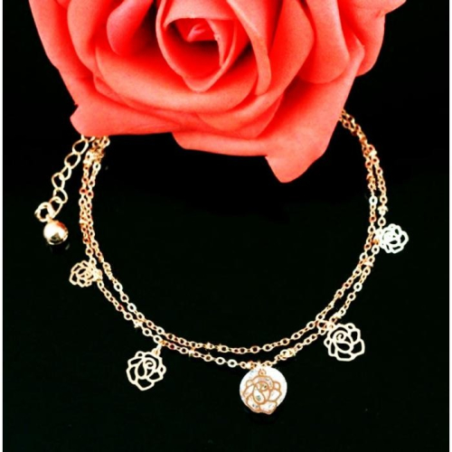 韓版鋯石玫瑰花雙層腳鍊 商品介紹 做工精緻 美觀大方,款式獨特 獨具個性 流行時尚極致簡約 材質 : 優質合金 顏色 : 金色 一般都有現貨 可直接下標 服務宗旨 : 認真做足100分 服務理念 : 負責 用心 快速