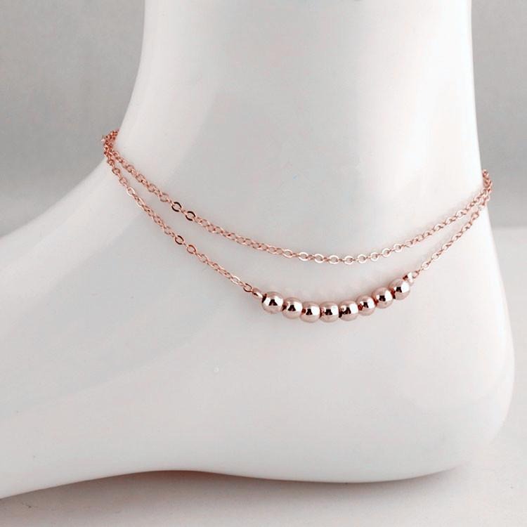玫瑰金彩金雙層腳鍊 時尚氣質腳鍊 飾品 腳鍊女生 沙灘腳鏈 雙層圓珠腳鍊 小球腳鍊 金屬腳鍊 足鍊 圓球腳鍊 腳環 腳飾
