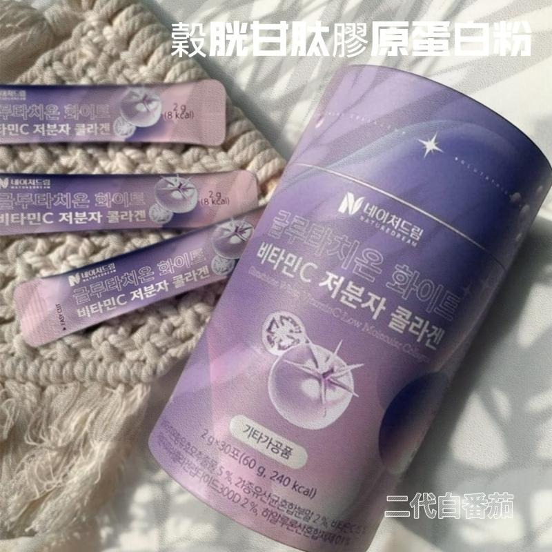 NATURE DREAM穀胱甘肽白番茄膠原蛋白益生菌30入 效期 2027/5/18 #清爽檸檬口味 #穀胱甘肽 #白番茄 穀胱甘肽➕膠原蛋白➕21種益生菌➕維他命C 💕新成分白番茄又稱水晶番茄 含有特殊的類胡蘿蔔素「八氫茄紅素」和「六氫茄紅素 複合配方: 📍L-穀胱甘肽酵母萃取物 📍21種混和乳酸菌粉末 📍維生素C 📍低分子魚膠原蛋白肽300D 📍玻尿酸混和製劑 📍副原料: 啤酒乾燥酵母、生物素混和製劑、薑黃提取粉末、L-半胱胺酸鹽酸鹽、甘胺酸、濃縮牛奶粉末 📣建議食用方式: 1天1次,1次1包,搭配100-200ml的水服用