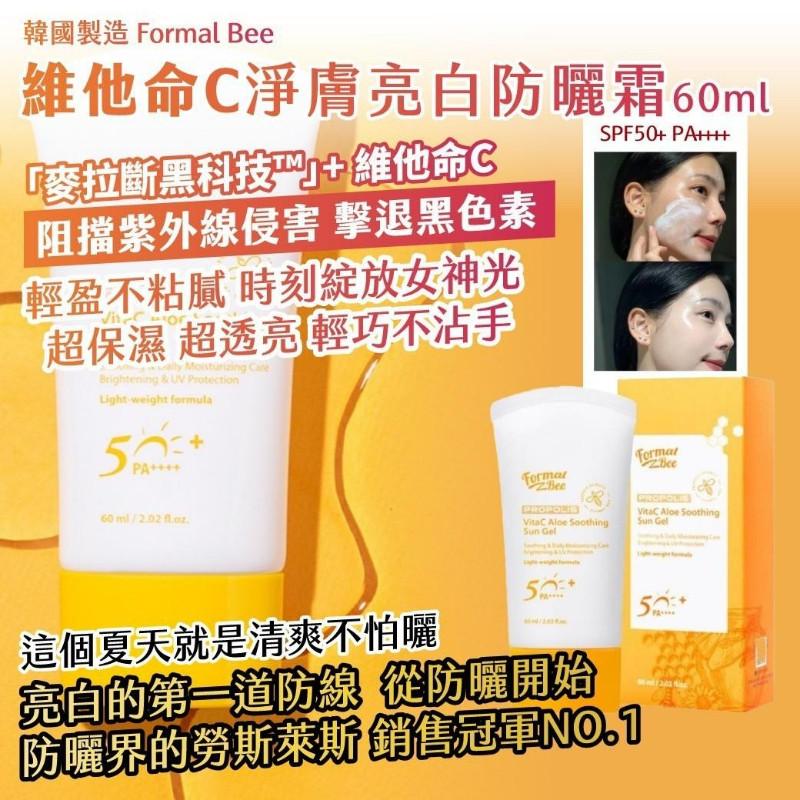 🇰🇷韓國製造 Formal Bee 維他命C淨膚亮白防曬霜 60ml ▪️蜂膠精萃 ▪️維他命C誘導體 ▪️VC檸檬 👏只要用對防曬 從肌底煥發年輕光采 效期2026.02.14