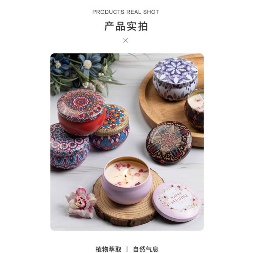 波希米亞風大豆香氛蠟燭套裝(4入) 一盒4入 ‼️味道隨機 單個尺寸6*4cm 點燃後一個可使用約8-10小時 單盒尺寸約15*15*6cm 生活就該來點儀式感 用香氛 治癒家裡的每個角落❤ 小小燭光,傳遞溫暖的正面能量 濃淡相宜的味道 彌漫在空氣裡。 頂級的植萃香氛融合在大豆提取的蠟燭精油 搭配七彩美石,盛裝雅緻的紋身馬口盒中 角落一隅溫暖柔和的光線就能安定人心 精選香精調味師特調 緩緩燃燒,散發淡雅的香氛氣息 開始一個美妙且紓壓的夜晚! ⭕不用時蓋上鐵蓋就可以 適合放置於客廳,浴室,臥室,下班後或是在您需要放鬆的時刻。 ⚠️ 每台手機、電腦等顯示器所呈現出的顏色難免有誤差,實際請以實體為主。 ⚠️商品售出後不得以「尺寸或與想像有落差」要求退貨及取消訂單。 ‼️手工丈量,平放測量size:如有2-3cm誤差皆為正常) ‼️誤差見諒