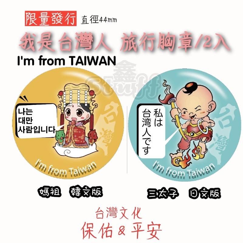 我是台灣人 旅行胸章/2入-預計2月底到貨 限量發行 1000組 武漢肺炎疫情導致今年爆發「#全球性的反中情緒」,更有台灣留學生遭受霸凌😭, 很多在國外的台灣朋友被誤認為中國人,而遭側目、排斥,連問路都被瞪,飽受困擾 🎉我們獨家設計「 #我是台灣人」識別胸章🎉 特別加入➡️台灣著名代表文化信仰:「Q版媽祖」、「三太子」 讓您❤️#旅行平平安安、#解決您出國在外被誤會的困擾 ● 限量-獨家訂製1000組售完截止,一套2入 ● 以台灣常旅遊地區英、日、韓三種語言設計一次到位,表達「我是台灣人」,可別於外套、背包、帽子上 ● 出國在外再也不被歧視,質感清晰,與外國人溝通的距離可清楚辨識 ● MIT台灣製,高質感直徑44mm。 材質:馬口鐵 。包裝:opp袋 月底到貨,預購數量有限